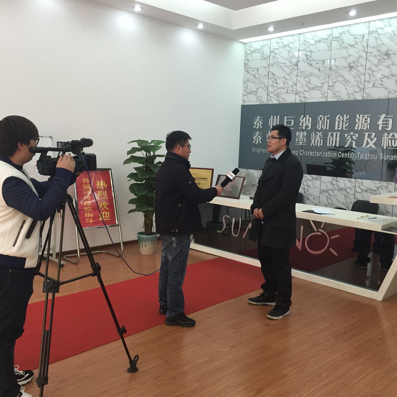 ? ? ? ?電視臺記者采訪(fǎng)了我司技術(shù)副總裁梁錚博士,梁錚博士是2010年作為泰州市“雙創(chuàng )”人才引進(jìn)到我司的,是我司的主要創(chuàng )始人之一,曾就職于著(zhù)名的貝爾實(shí)驗室,擅長(cháng)理論計算、石墨烯的電學(xué)和光學(xué)性能的研究。到泰州工作以來(lái),梁錚博士領(lǐng)導及參與了多項國家、省市級科技項目的管理及研發(fā)。同時(shí),梁錚博士組織及參與我國多項石墨烯標準化工作。2013年成為中國石墨烯產(chǎn)業(yè)技術(shù)創(chuàng )新戰略聯(lián)盟首屆標準化委員會(huì )秘書(shū)長(cháng),負責主持石墨烯標準化的相關(guān)工作。2014年成為國際標準化組織ISO /TC 229/ WG4納米材料技術(shù)委員會(huì )委員。2016年成為中國國際石墨烯資源產(chǎn)業(yè)聯(lián)盟國際標準工作委員會(huì )秘書(shū)長(cháng)。曾牽頭和參與多個(gè)國內外標準,如ITU-T國際標準、國家納米技術(shù)標準等相關(guān)標準的發(fā)起與制定,是我國首個(gè)石墨烯國家標準《石墨烯材料的術(shù)語(yǔ)、定義及代號》的主要起草人。電視臺記者還深入到我司各個(gè)部門(mén)進(jìn)行了實(shí)地采訪(fǎng)。
